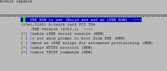 I’ve recompiled several times with several options. The only time I can get a PXE option to show up is using a USB NIC, never the onboard 10ec:8186 which is listed as a supported ipxe device. I’ve included both the stable and master versions of ipxe to no avail. What gives with that card?
