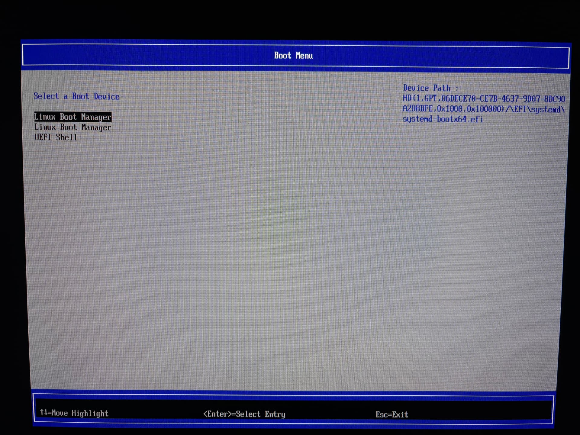 when on the boot menu screen, highlight the Linux Boot Manager entry and post a pic showing the info on the right which tells where that entry points to on disk