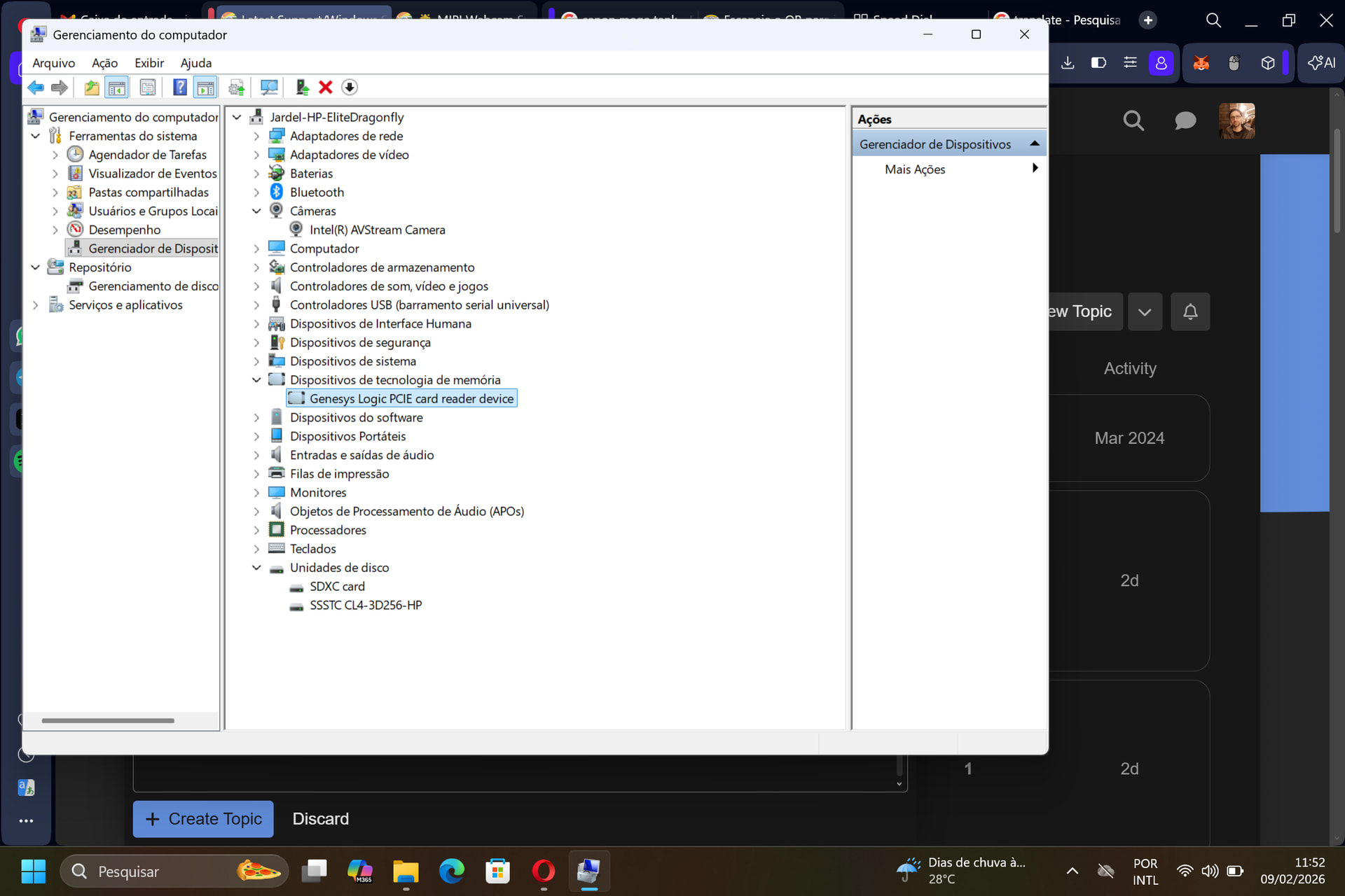 Looking at the Coolstar support page for the HP Elite Dragonfly, REDRIX board, it states that the card reader doesn’t work, but it’s possible to make it work by installing the “Genesys Logic PCIE card reader device” driver.