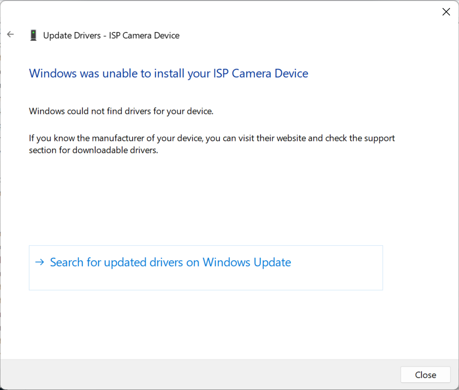 I gave that a try, but it didn’t seem to take. Before doing this, I removed the hi556.inf driver manually using the command line pnputil. This time I chose the version from the Github repo above.