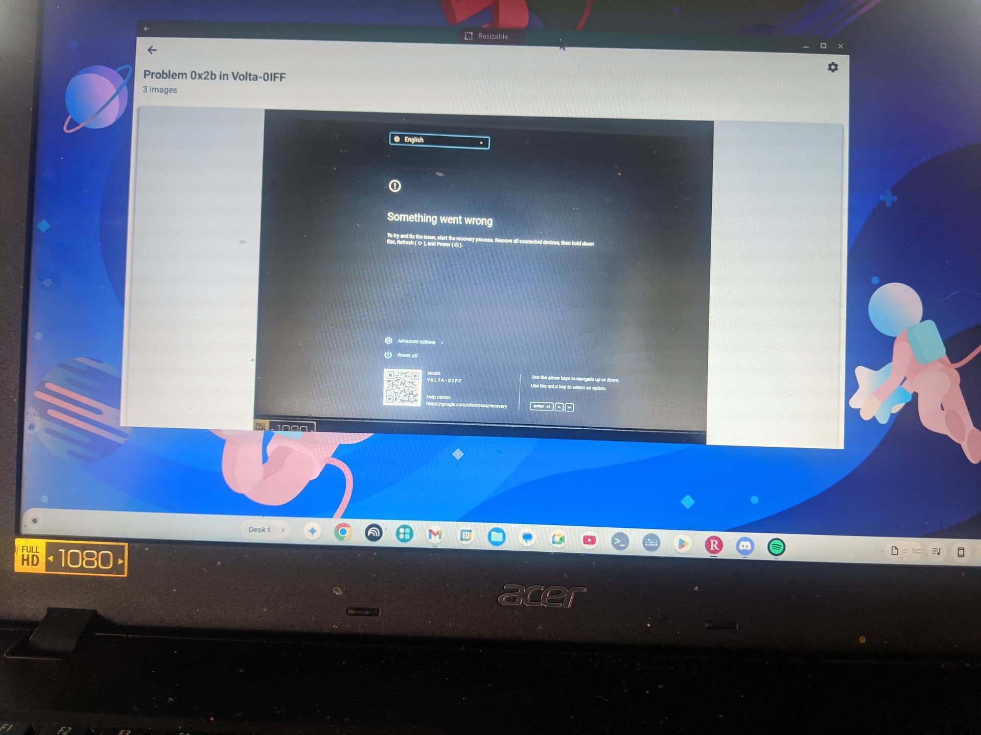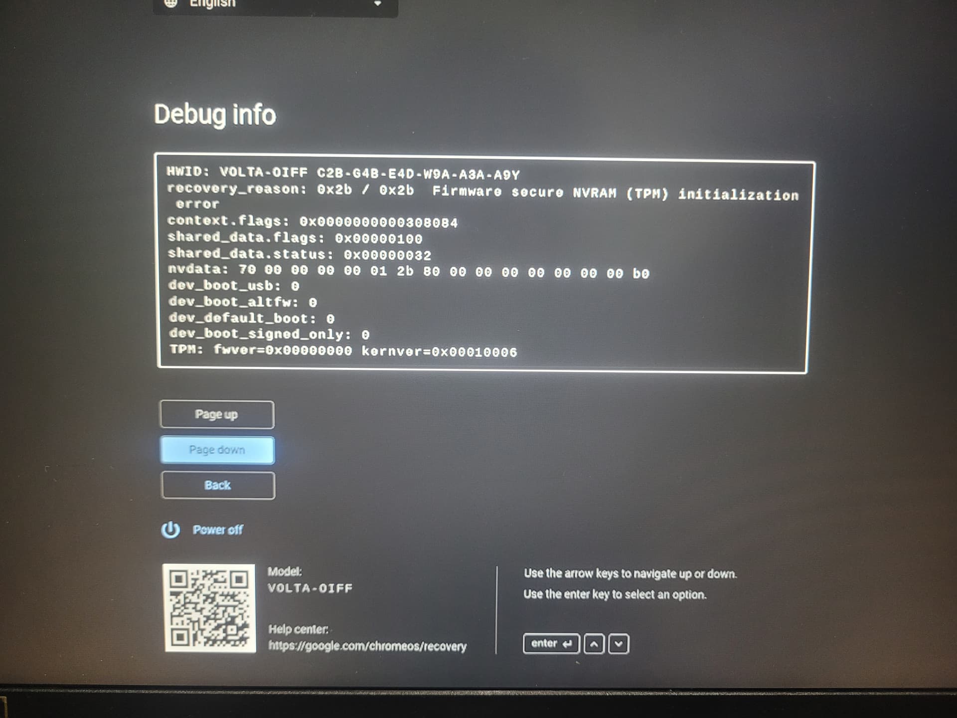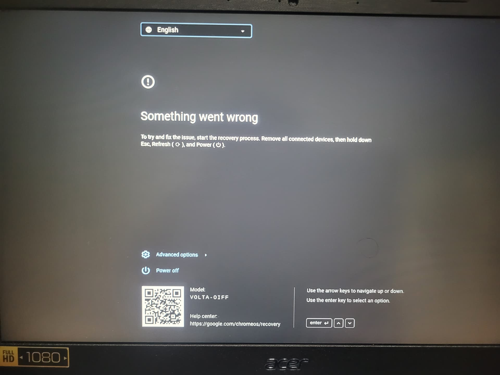 I had Linux installed on my Chromebook 514 Volta, but I wanted to switch back to Chrome OS following the tutorial on the Mr Chromebox website. However, right after the USB recovery process finishes, that error message keeps appearing over and over. I’ve already tried restarting repeatedly, waiting 30 seconds between each attempt, disconnecting the battery, using various button combinations, and nothing works. I should mention that it’s not physically damaged, and when I try to enable developer mode, nothing happens; it just takes me back to that screen. What options do I have to recover my Chromebook?