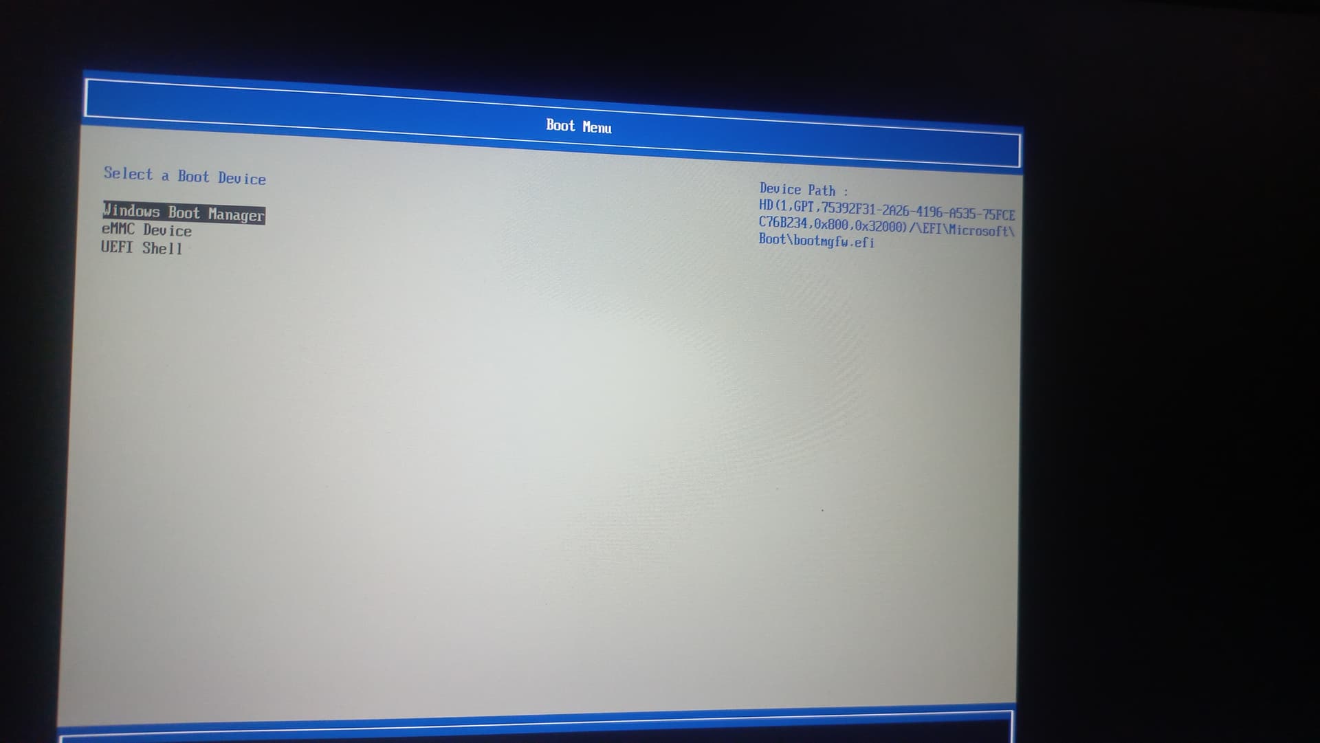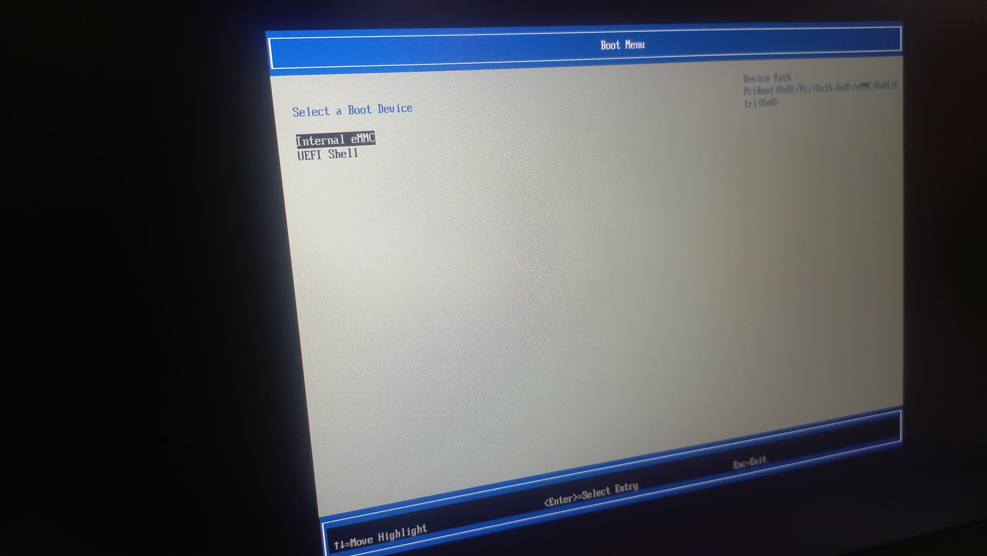 sounds like edk2’s eMMC drivers are to blame? does the eMMC device show under the Boot Menu when it fails to boot?