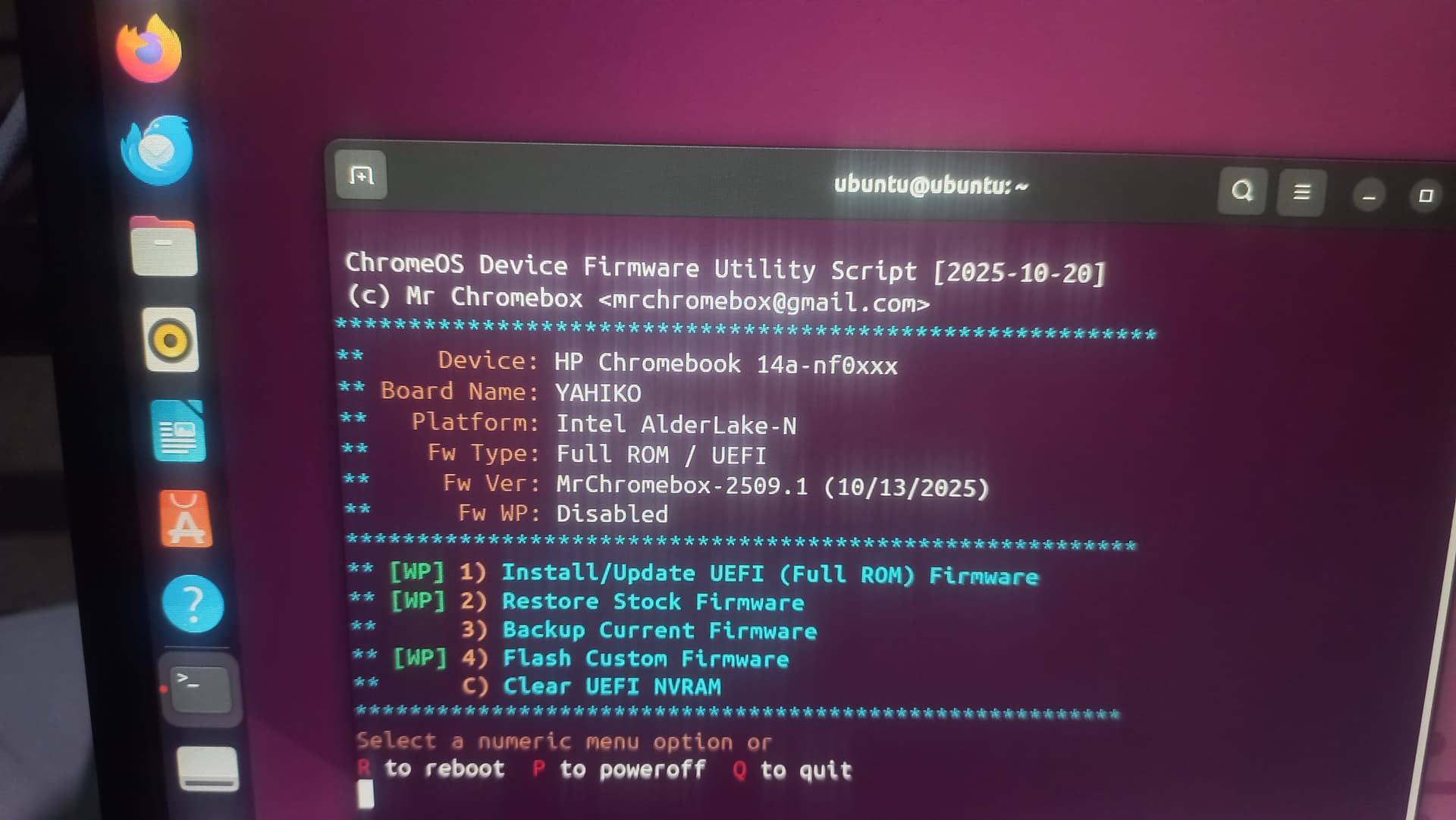 mine is the hp chromebook 14a yahiko. After installing mrchromeboox firmware and installing windows it sometimes boots and most times it says cannot boot from windows boot manager and cannot boot from emmc. And sometimes the booting is slow. Below is the picture of when i was flashing again with chromebox firmware through ubuntu
