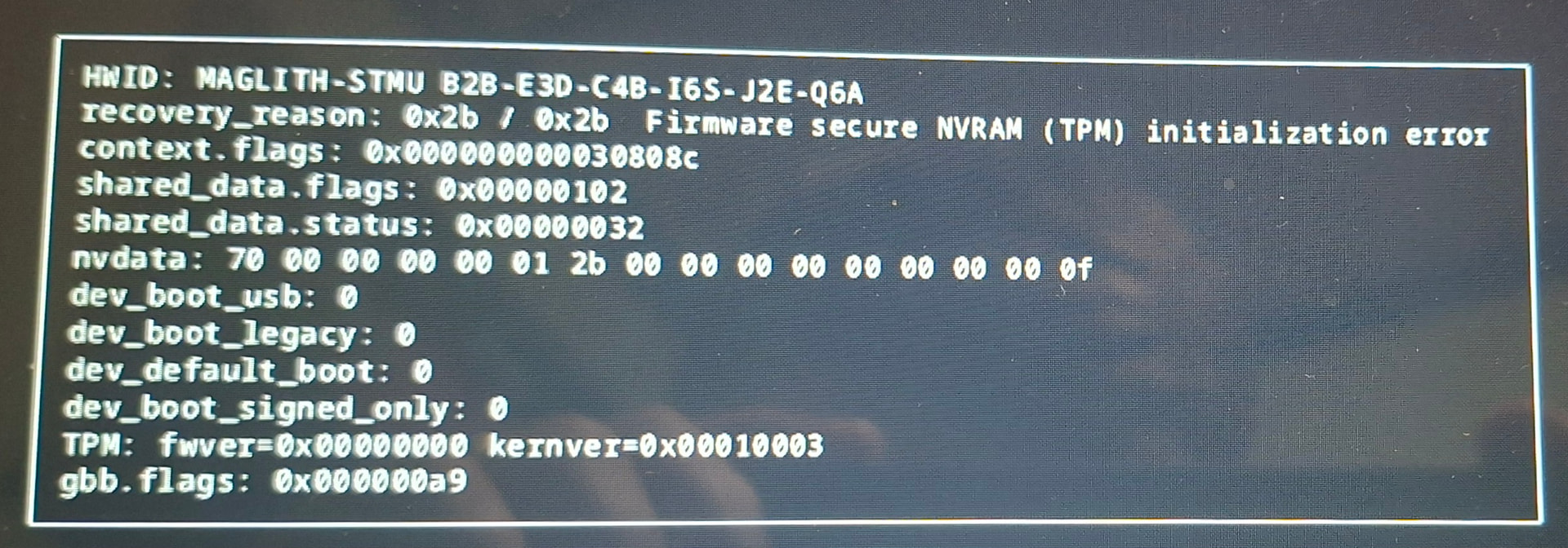 Ugh the dreaded TPM error once again. The device is effectively bricked in this state.